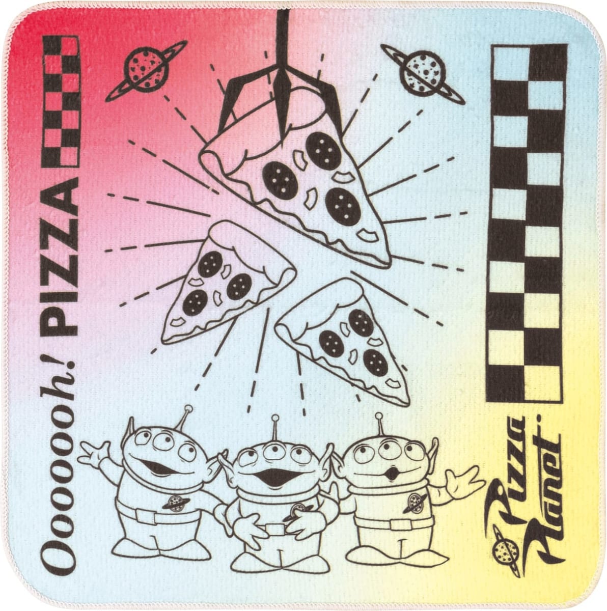 クレーンで吊られるピザを笑顔で見つめる「エイリアン」柄などがラインナップ。