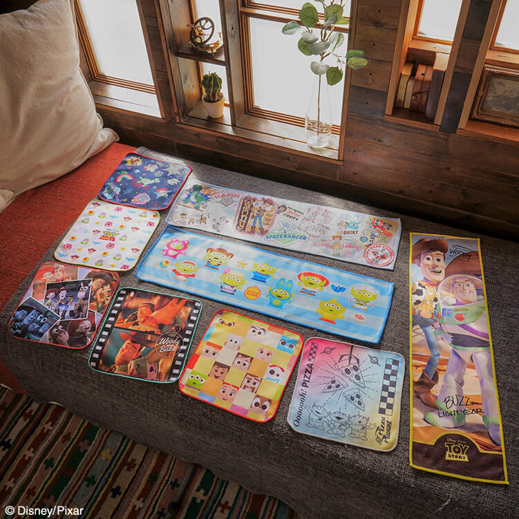 元気いっぱいの笑顔を見せる「ウッディ」や「ジェシー」「ブルズアイ」がプリントされたものや