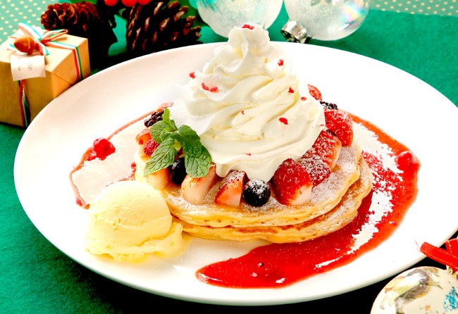 2020年12月1日より登場の「クリスマスパンケーキ」は、華やかで楽しいクリスマス限定メニューです。