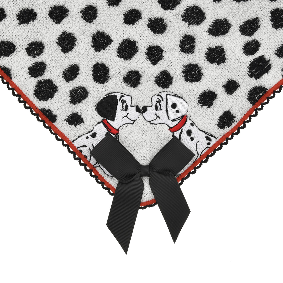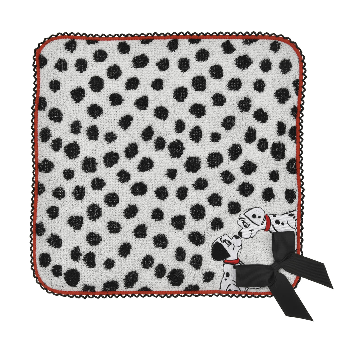 鼻と鼻を突き合わせるダルメシアンの刺しゅうがアクセントになった「ミニタオル」