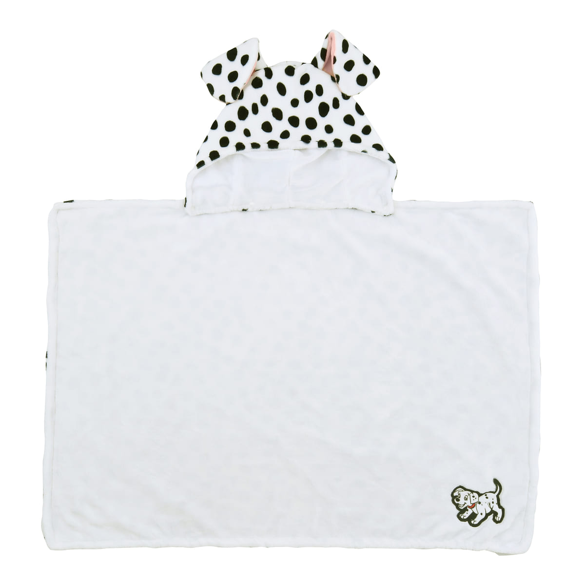 ダルメシアン柄と真っ白い無地の2パターンで使える、フード付きの「ブランケット リバーシブル」