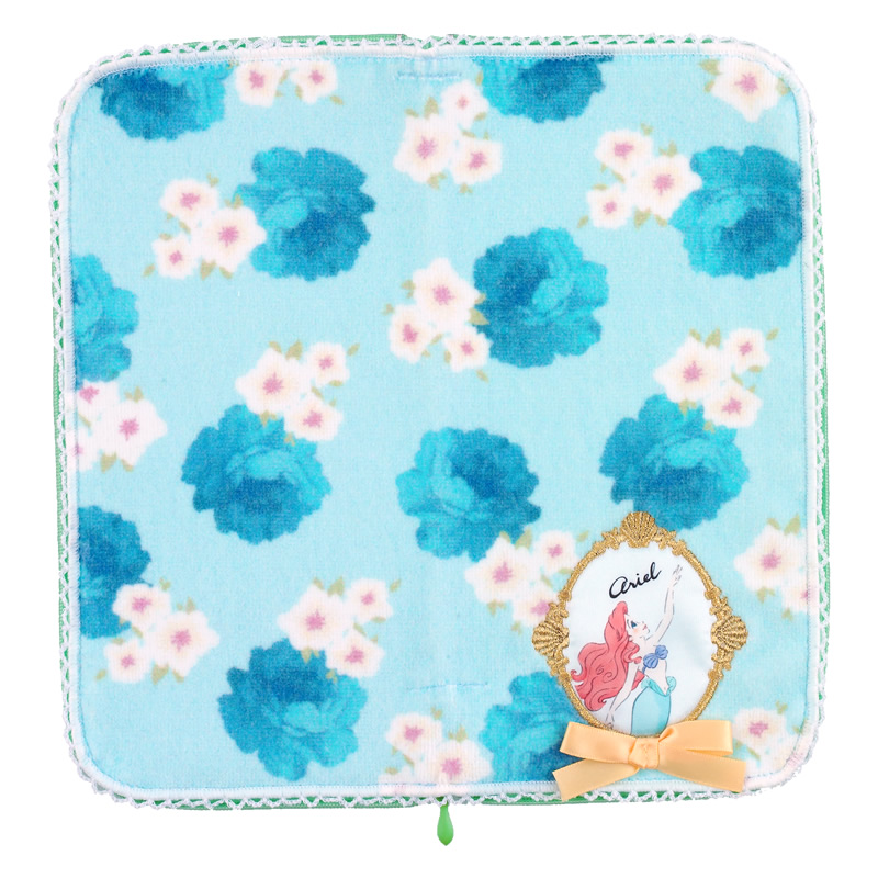 海の中のような澄んだブルーの薔薇が印象的な『リトル・マーメイド』のディズニープリンセス「アリエル」がデザインされたフラワーシリーズのどっとポーチ。