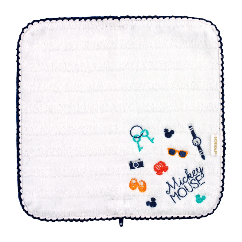 品の良いブルーを基調とした、「ミッキーマウス」アイコンデザインのどっとポーチ。