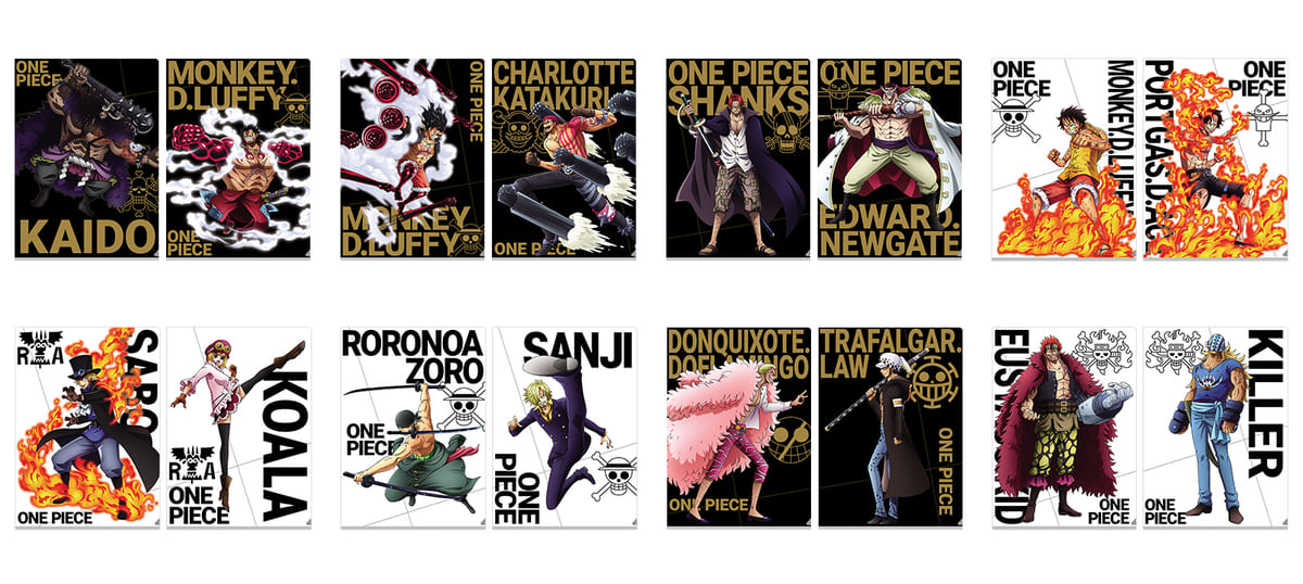 対立か共闘のどちらかで2枚が対になるデザインのクリアファイルセットは、全8種類。