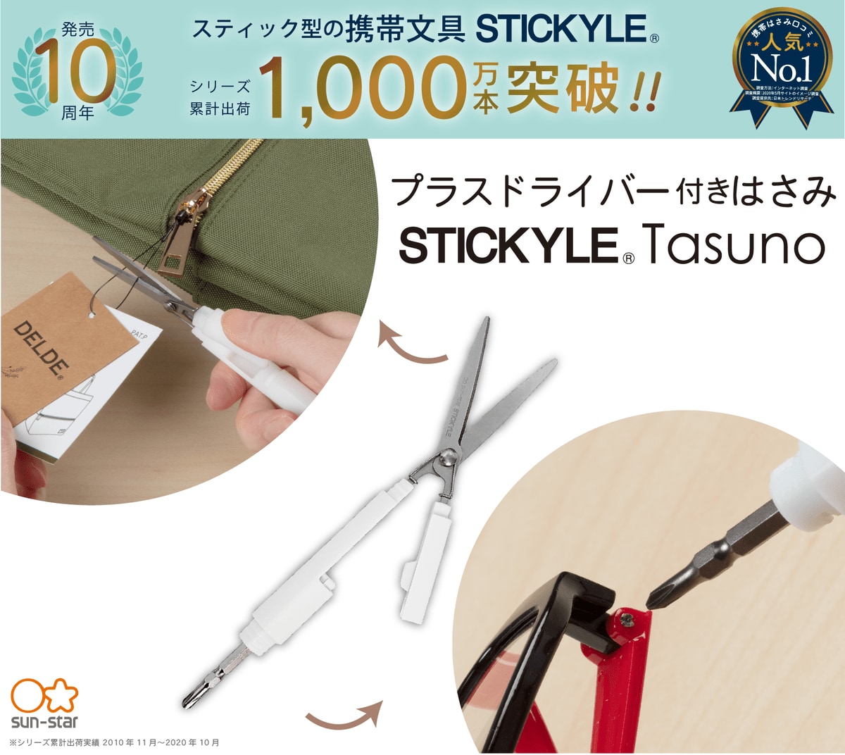 サンスター文具から販売されている、持ち歩きに便利なスティック型の携帯文具シリーズ「STICKYLE(スティッキール)」は、2020年11月に発売10周年!
