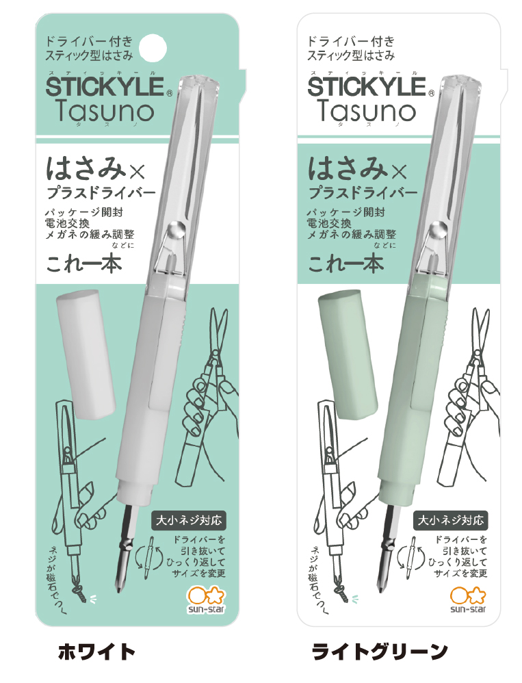 2020年12月中旬には、はさみとプラスドライバーが1つになった2way仕様の新型「スティッキールはさみ Tasuno(タスノ)」が順次発売されます。