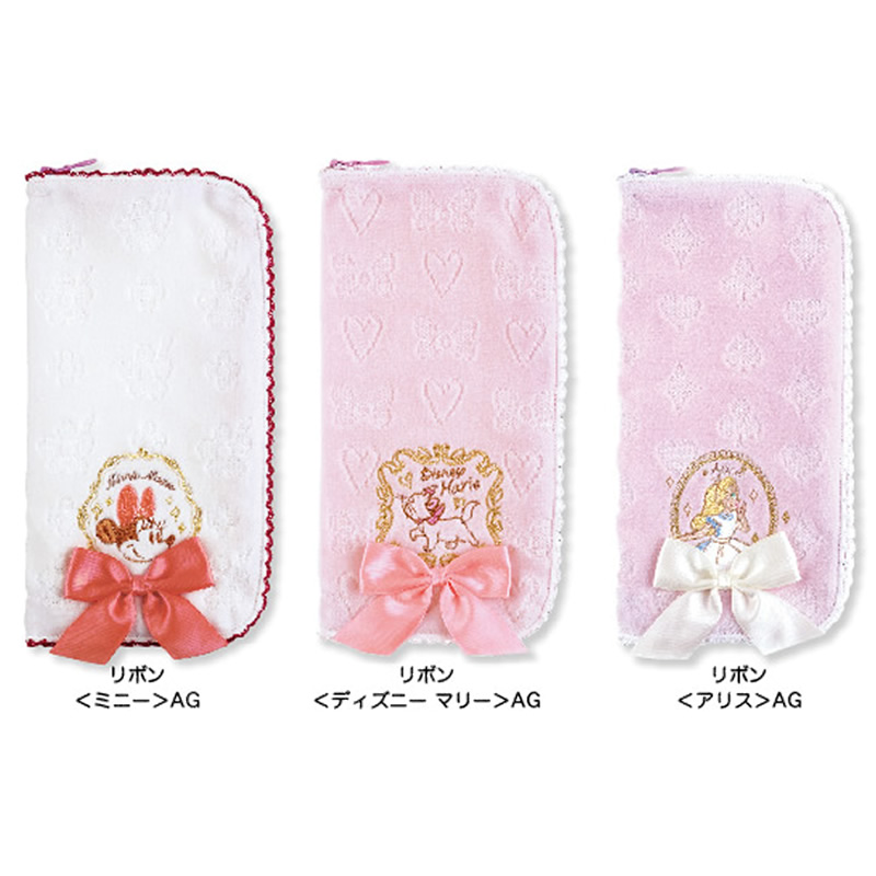 タオルのような見た目で、小物をさりげなく持ち運べるアイアップの「どっとポーチ」に、リボン付きのディズニーデザインが登場。