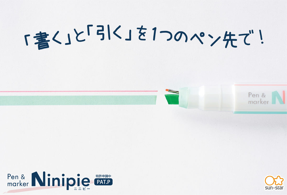 ステーショナリーメーカーのサンスター文具から、1つのペン先にペンとマーカーが一体化した「Ninipie(ニニピー)」が登場!