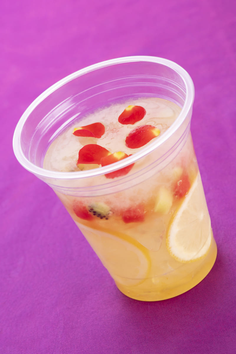 カルピスをベースにしたドリンクには、たっぷりのカットフルーツが使用されています。