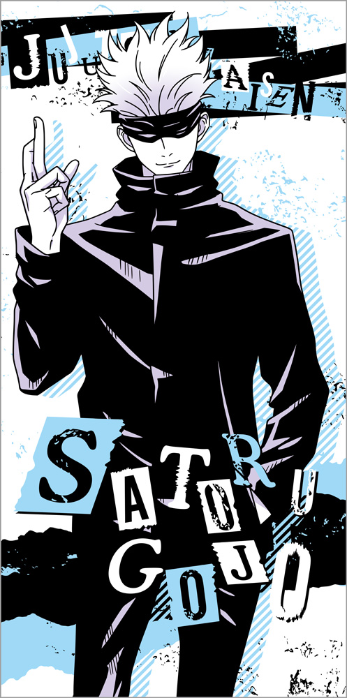 E賞は、東京都立呪術高等専門学校の教師であり最強呪術師の「五条 悟」デザインのビジュアルタオル。