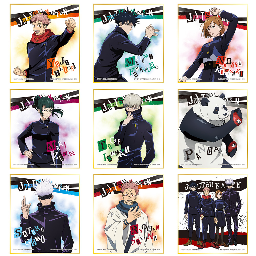 「虎杖悠仁」、「伏黒 恵」、「釘崎野薔薇」、「禪院真希」、「狗巻棘」、「パンダ」、「五条 悟」、「両面宿儺(りょうめんすくな)」、「集合」の全9種がラインナップされています。