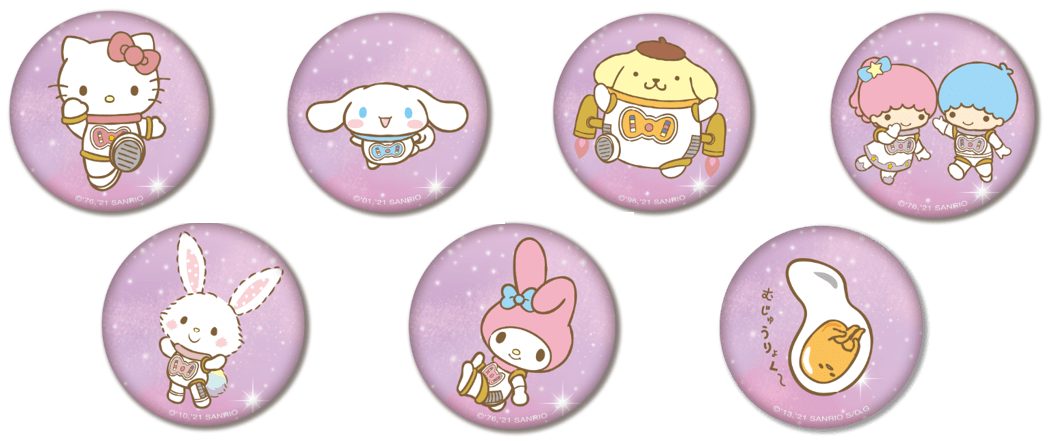 「ハローキティ」や「シナモロール」「ポムポムプリン」デザインの缶バッジは、得点に応じてプレゼントする缶バッジの数が変わります!