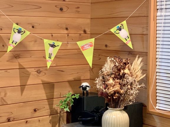 印刷して紐を付けるだけで完成する、『ひつじのショーン』のガーランド素材。
