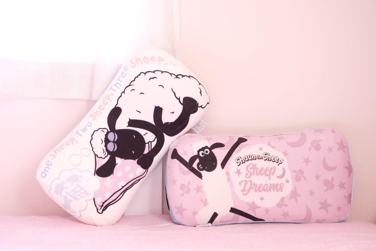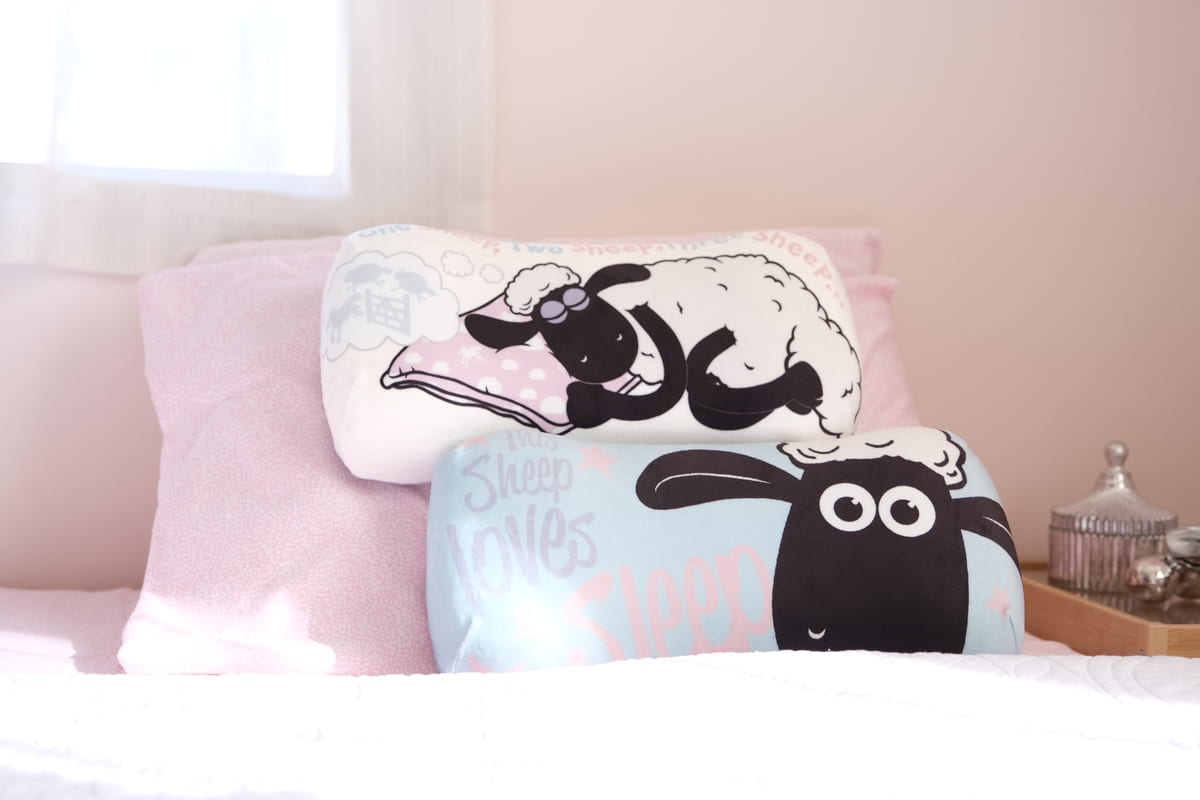 白を基調とした気持ちよさそうに眠る「ショーン」の柄と、水色とピンクの色合いが優しい雰囲気で「ショーン」が大きく描かれた柄の2種類。