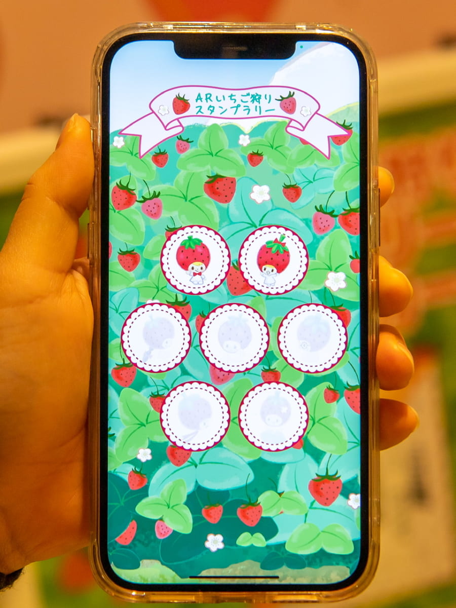 チェックポイントは全部で6カ所用意されており、各場所でキャラクターいちごをとるとスタンプがもらえます。