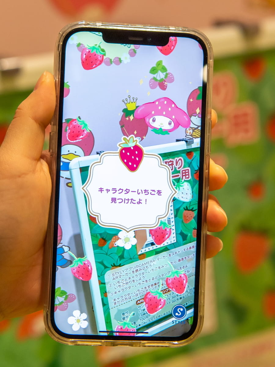 館内を巡りながら、スマートフォンでクリエイティブプラットフォーム「STYLY」のアプリを使用してARマーカーを読み取ることでいちご狩りが体験できます。