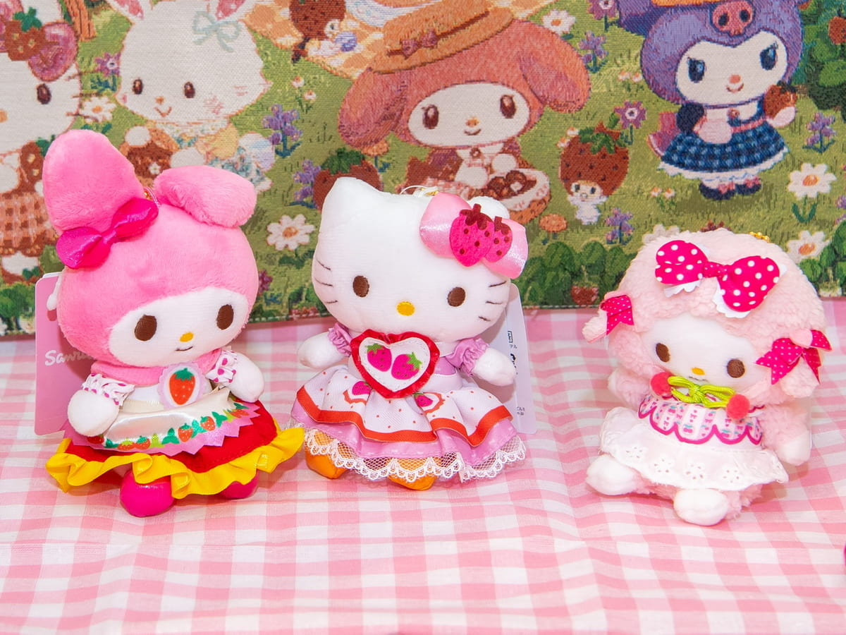 「ハローキティ」は、いちごのエプロンを身に着けた可愛らしいスタイル」、