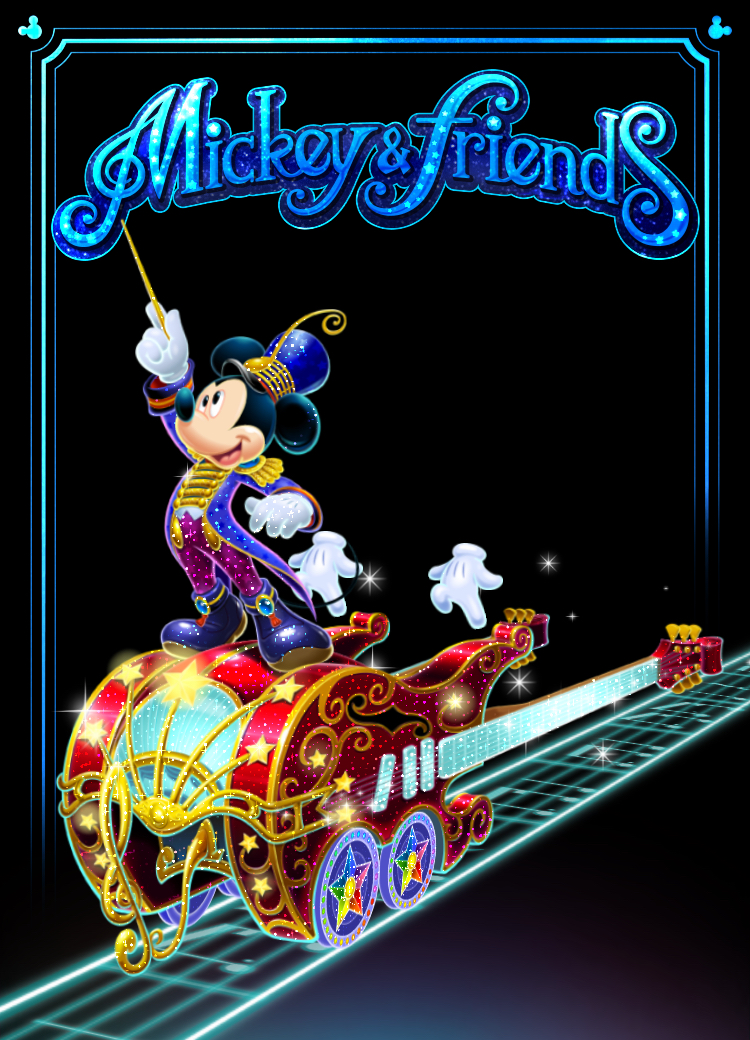 いずれも『ディズニー ミュージックパレード』のためにオリジナルで描かれたキラキラのアートスタイルが特徴的なデザイン。