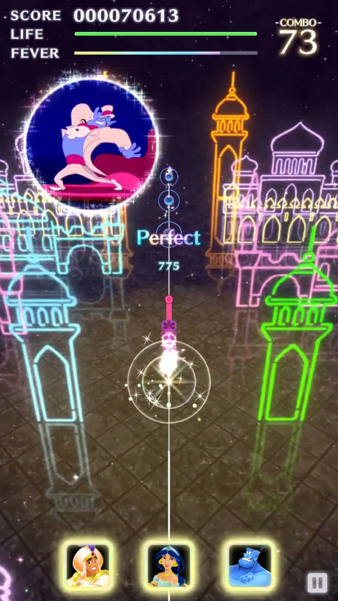 キラキラのオリジナルアートとディズニーの楽曲がおりなす、ライドアトラクションのようなスマホゲーム!
