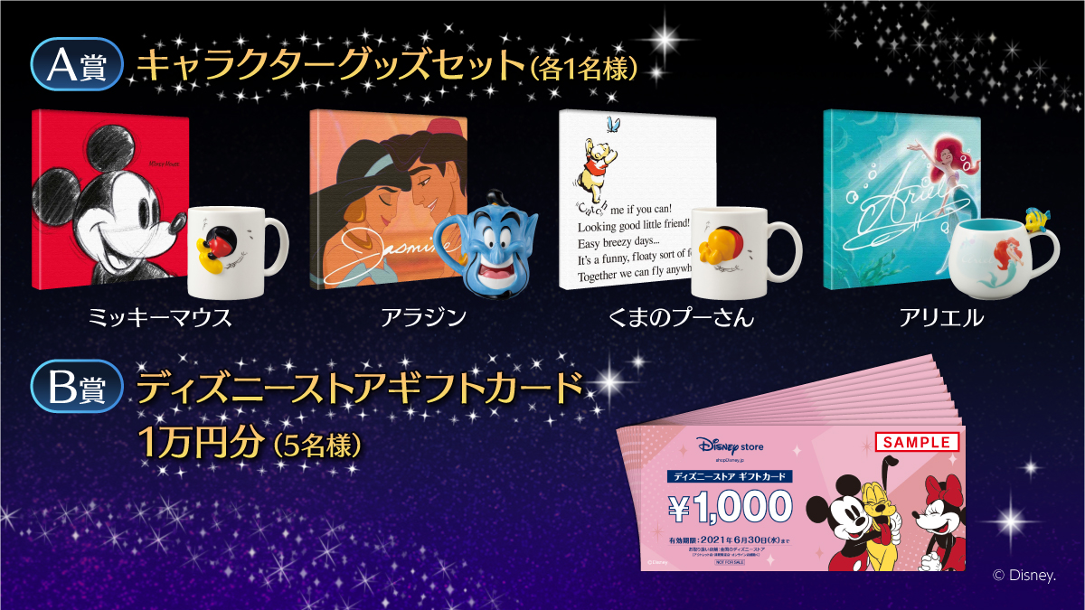 ・キャラクターグッズセット「ミッキーマウス」:1名・キャラクターグッズセット「くまのプーさん」:1名・キャラクターグッズセット「アリエル」:1名・キャラクターグッズセット「アラジン」:1名