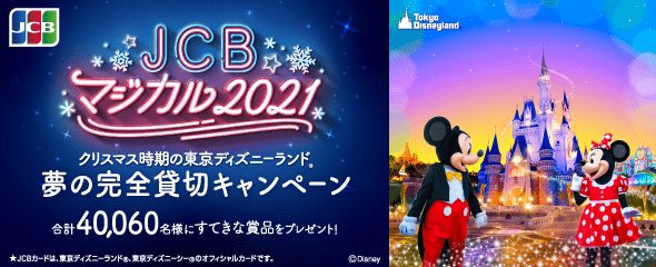 ジェーシービーでは、JCBブランド会員を対象にした「JCB マジカル 2021 クリスマス時期の東京ディズニーランド 夢の完全貸切キャンペーン」を実施中です。