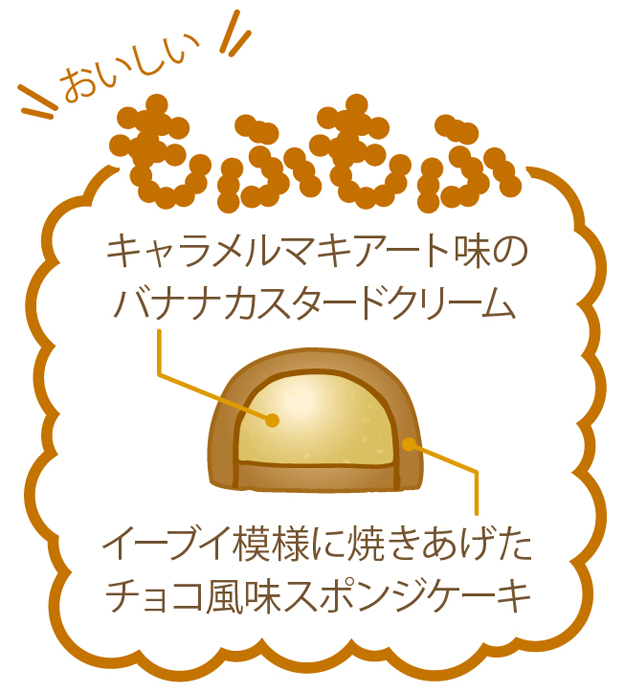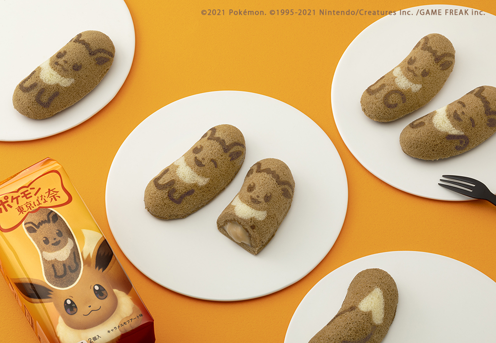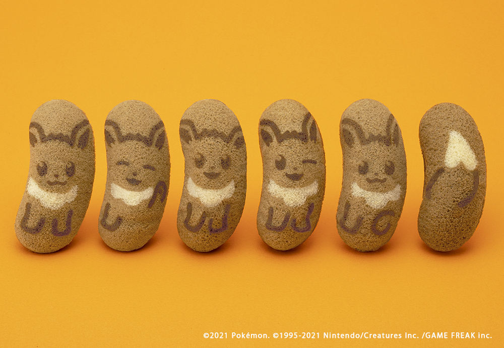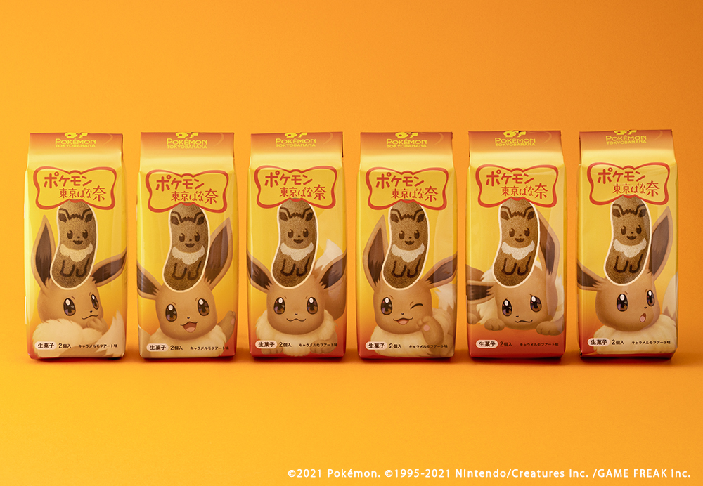 愛くるしいイーブイ模様で焼きあげた「イーブイ東京ばな奈」は、幸せいっぱいの“もふもふ”をテーマにした“キャラメルモフアート味”です☆