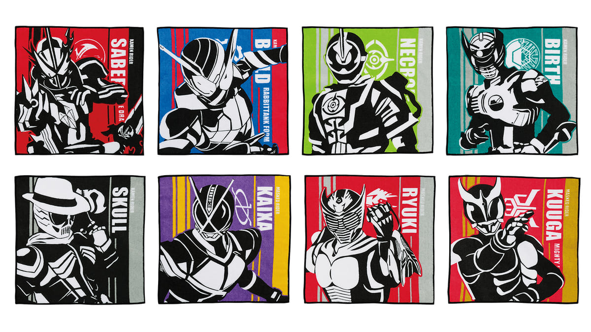 C賞は、各「仮面ライダー」のイメージカラーで彩られたハンドタオル。