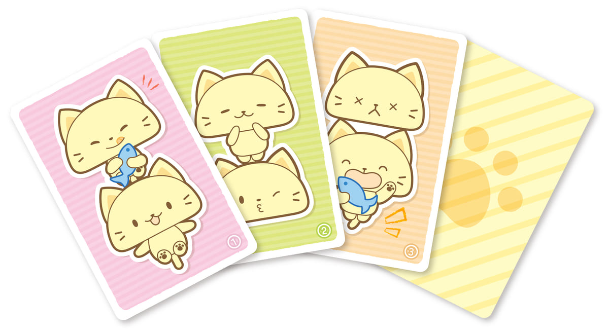 「そろえてにゃんこ」は、カードに描かれたにゃんこを最も早く釣り上げたプレイヤーがポイントを獲得します。