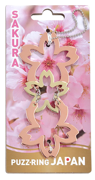 ピンクの桜2つの真ん中に、金色の桜がある華やかな知恵の輪。