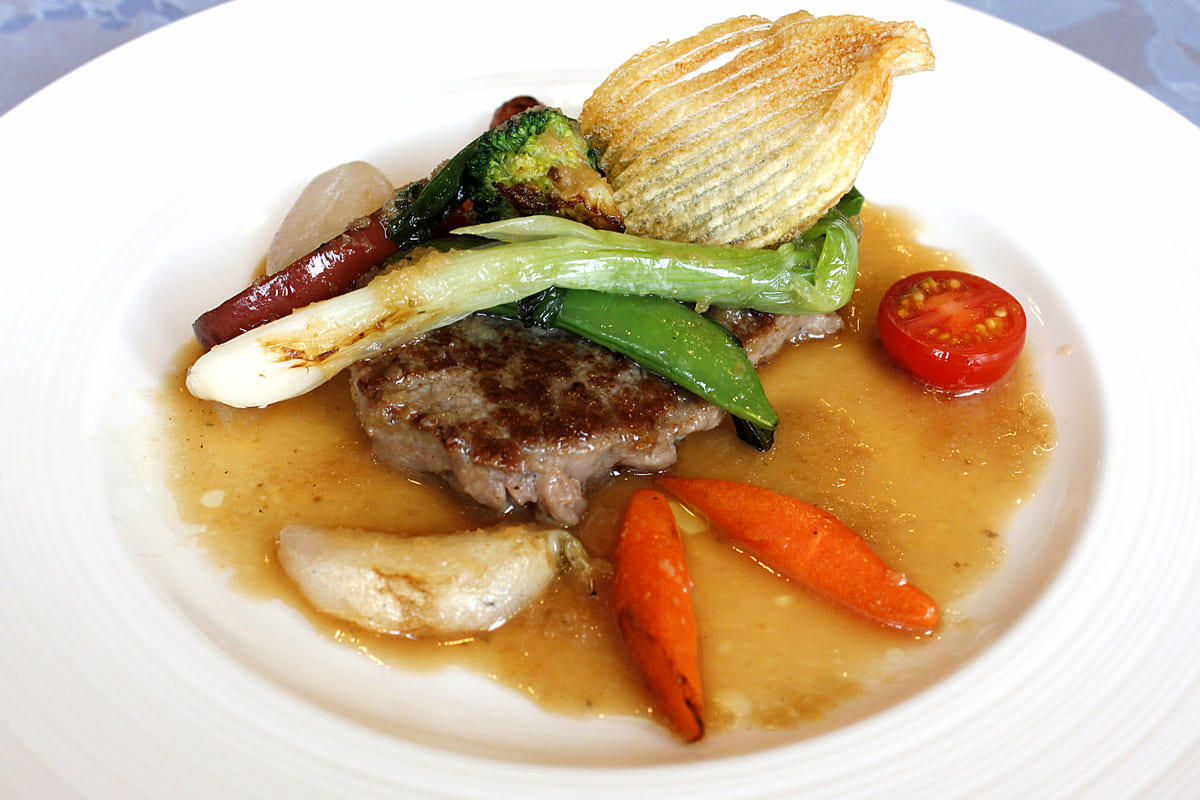 肉料理は「和風牛ロースステーキ 越冬野菜添え」