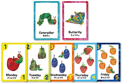 『はらぺこあおむし』の楽しいイラストで、数字やアルファベットなどが遊びながら学べるカードゲーム!