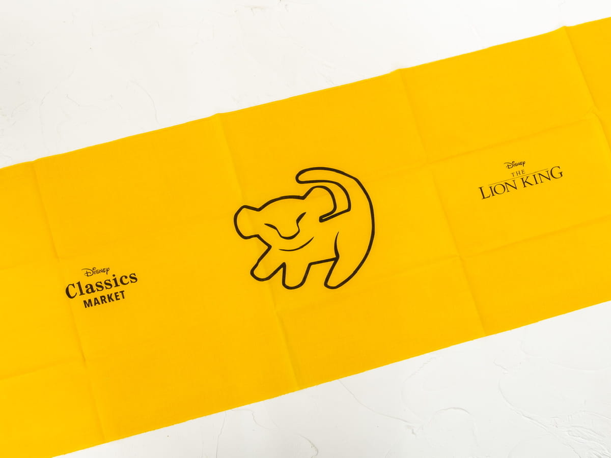 「子シンバ」の他、作品ロゴと「Disney Classics MARKET(ディズニー クラシック マーケット)」ロゴがあしらわれた、シンプルでおしゃれな「手ぬぐい」です。
