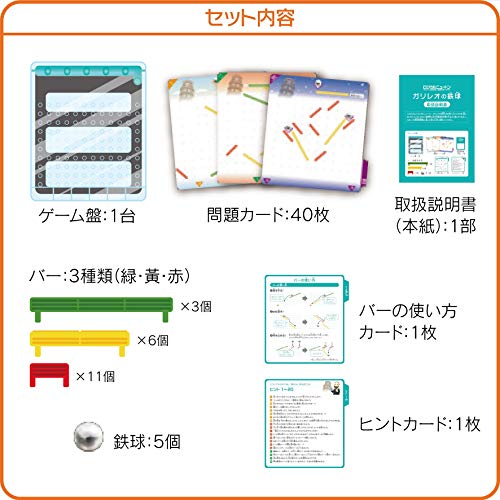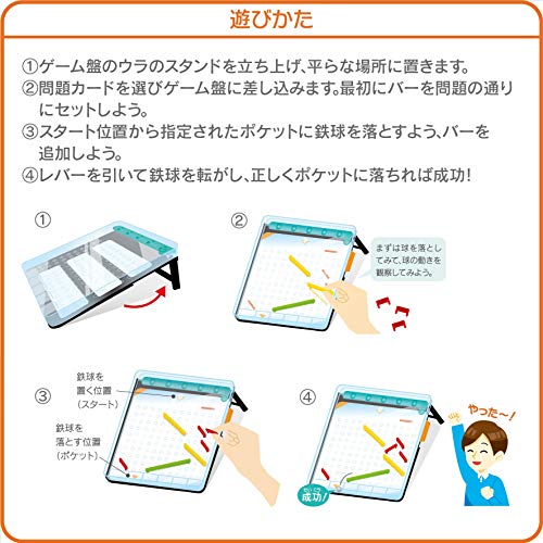 その実験内容をモチーフに、目標のポケットに鉄球を落とすにはどの場所にバーをセットするか考えるゲームです。