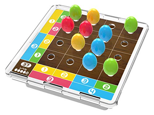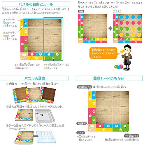 「コロンブスのひらめきタマゴ」は、色と数をヒントに16個のピースを配置するパズルゲーム。