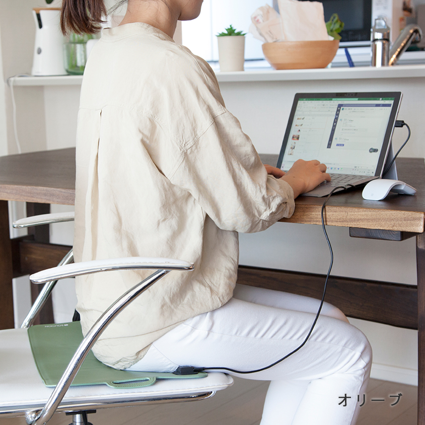 オフィスでホット座布団のように使えば、いつもの椅子が暖かく快適に!