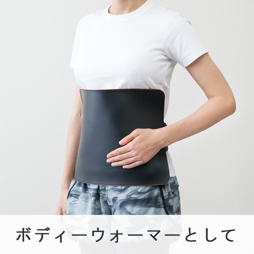 付属のベルトでお腹や腰回りに固定すれば、なんとボディーウォーマーにも変身!