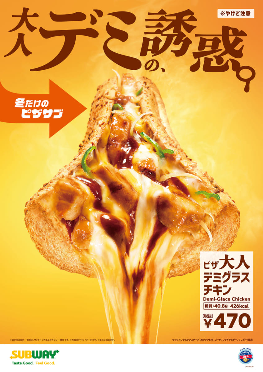 サンドイッチ・チェーン「サブウェイ」に、2021年1月20日(水)より、「とろ~りチーズ+デミ+マスタード」が醸し出す2021年冬限定のぷち贅沢な”大人の味わい”『ピザ 大人デミグラスチキン』が登場!