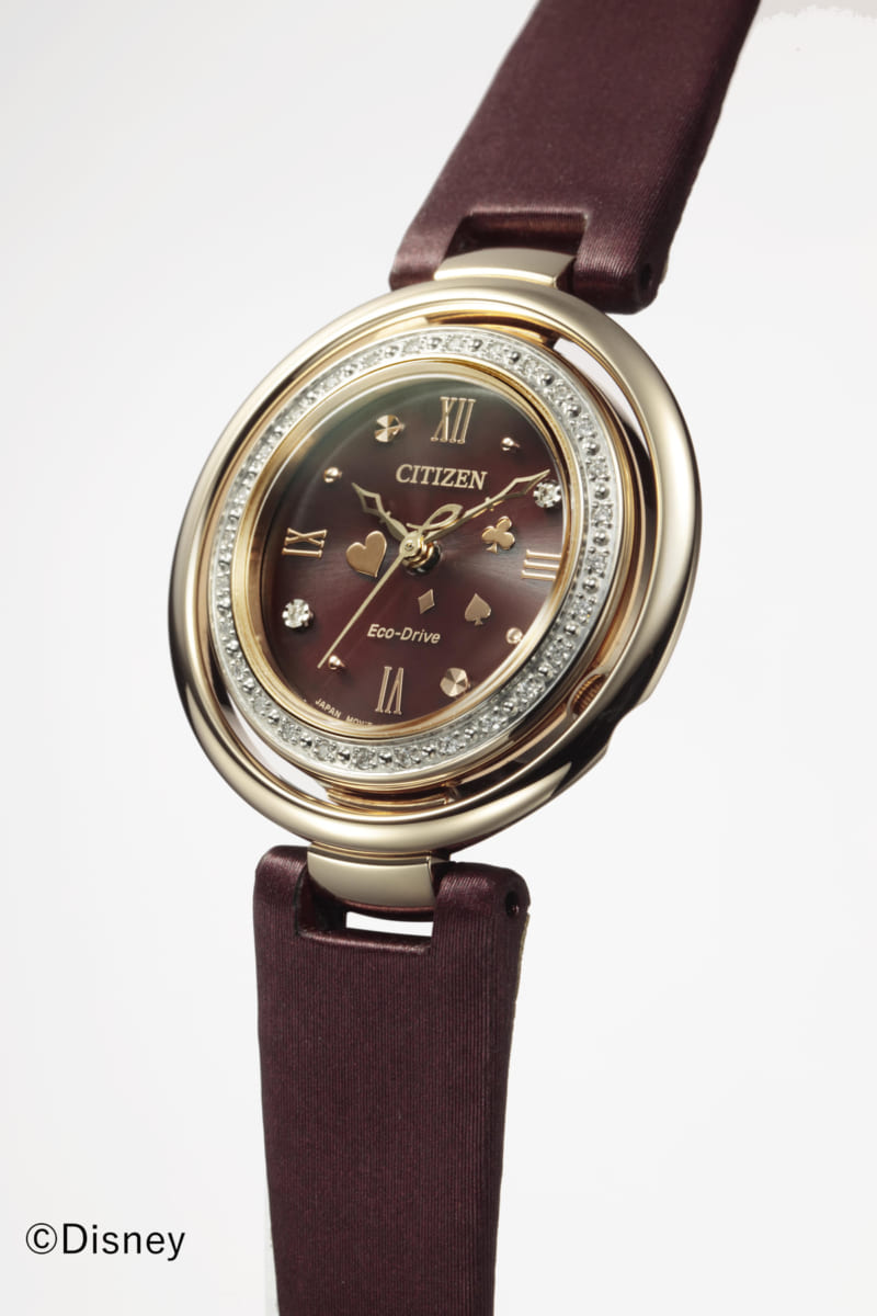 ディズニー映画『ふしぎの国のアリス』をイメージした『シチズン エル』エコ・ドライブ腕時計。