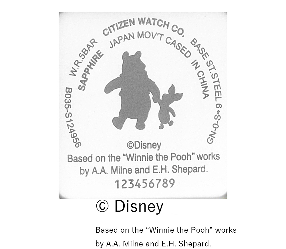 原作「クマのプーさん」が出版された10月14日にちなんで、10時と4時位置に2ポイントのダイヤモンドが施されています。