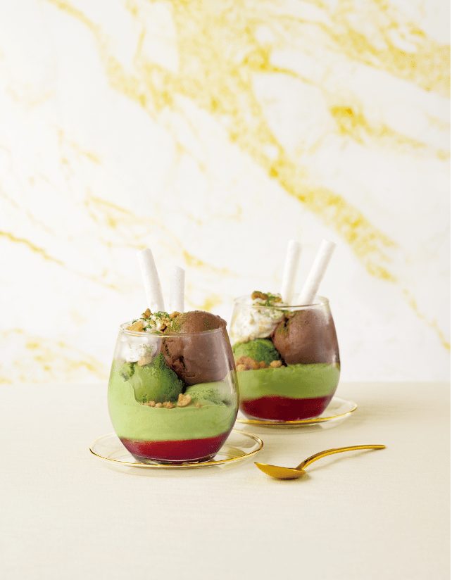 ナナズグリーンティーオリジナルの抹茶アイスクリームとハーゲンダッツのアイスクリーム「スイートチョコレート」がひとつのグラスの中でマリアージュ!