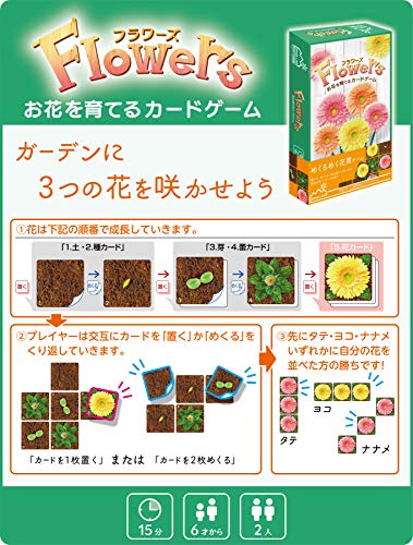 花が咲くには、土→種→芽→つぼみという成長過程があり、順番通りにカードを置いたり、めくったりする必要があります。