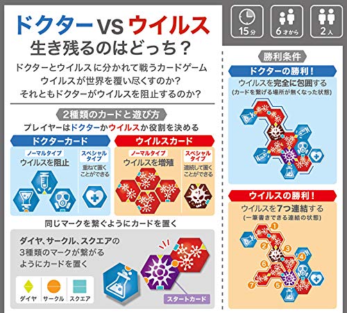 菌と医療に分かれ、交互にカードを場に出し繋げていくゲームです。