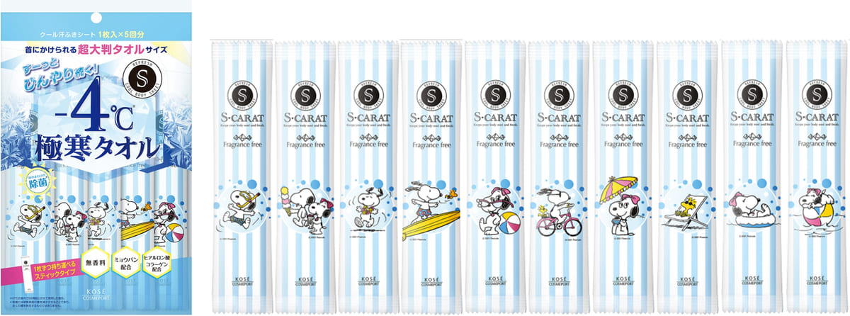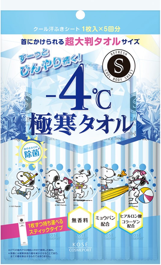 ひんやりと感が1時間続くスヌーピーの汗拭きシート!コーセーコスメポート『PEANUTS』エスカラット 極寒タオル