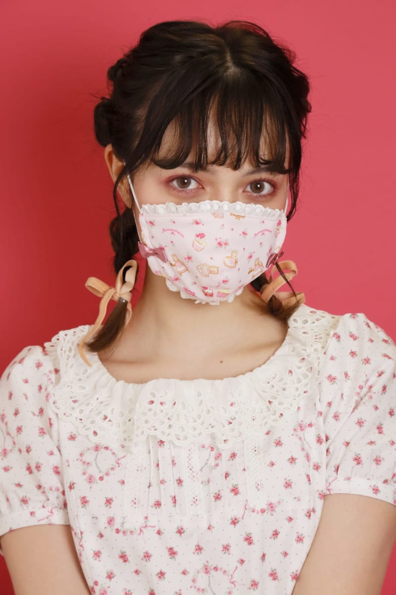 アパレルブランド「シャーリーテンプル」らしい、リボンやレース使いが可愛い「マロンクリーム」のマスク。