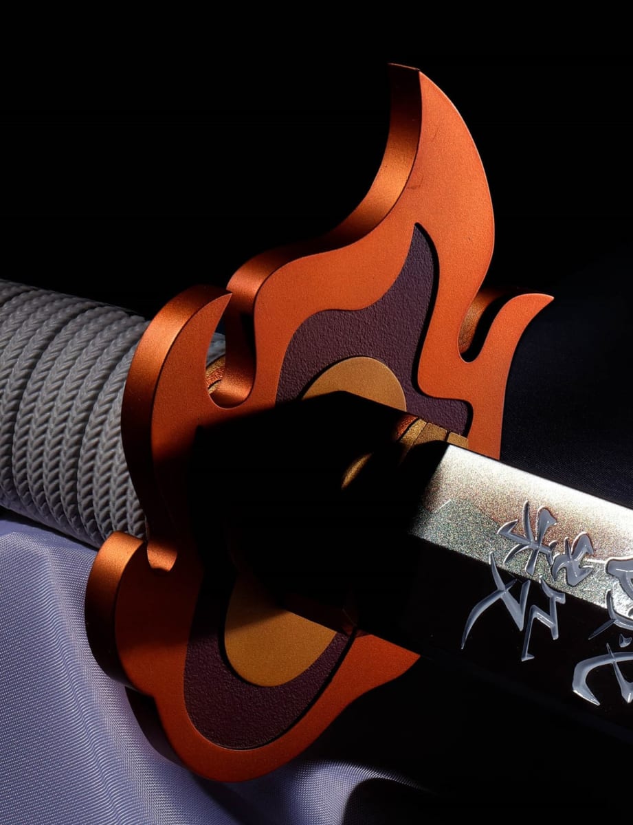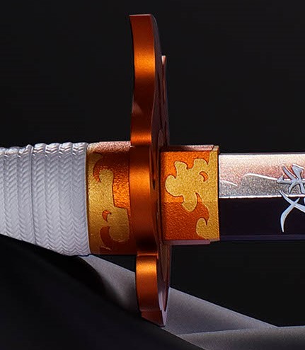 「煉獄杏寿郎」の日輪刀の特徴である鍔は、彩色や凹凸まで公式監修の下リアルに再現されています。