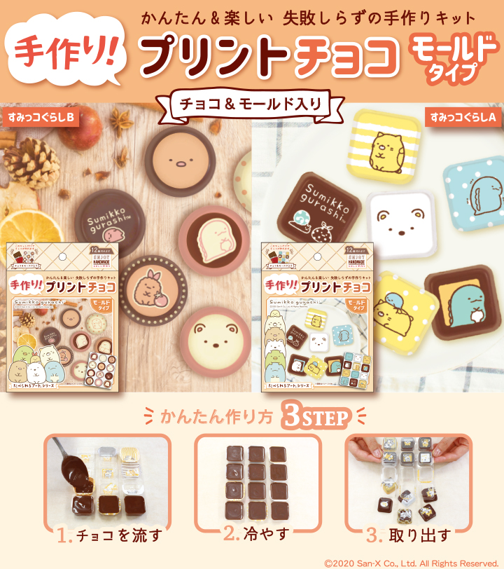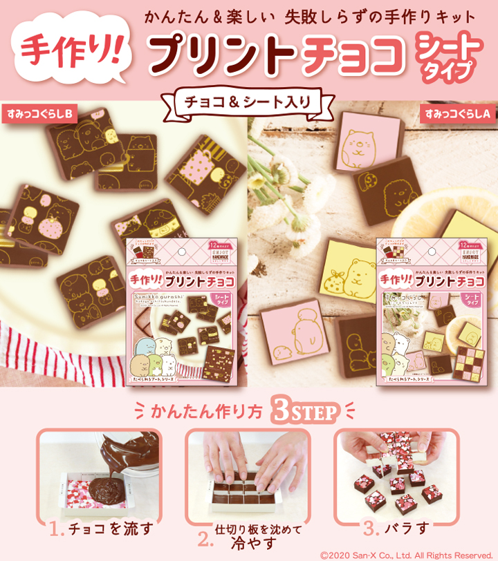 可愛くてきれいな手作りチョコが簡単に作れる「手作り!プリントチョコ」に「すみっコぐらし」デザインがラインナップ。
