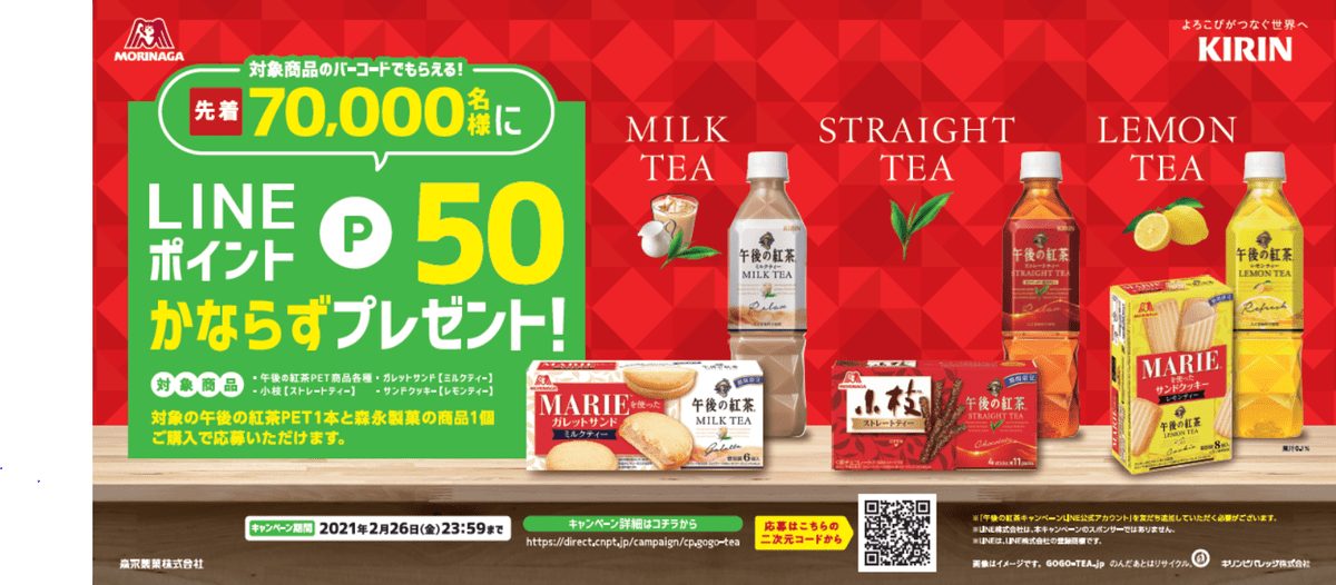 森永製菓と「午後の紅茶」コラボを記念して、LINEポイントが必ずもらえるキャンペーンも開催☆