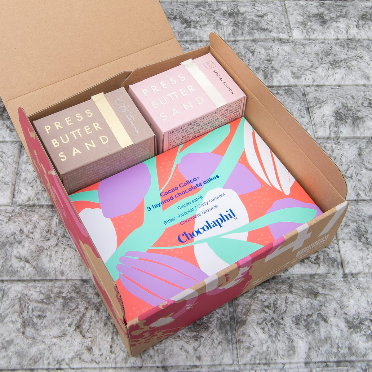 セットになっている、「PRESS BUTTER SAND(プレスバターサンド)」と「Chocolaphil(ショコラフィル)」のスイーツを紹介していきます☆