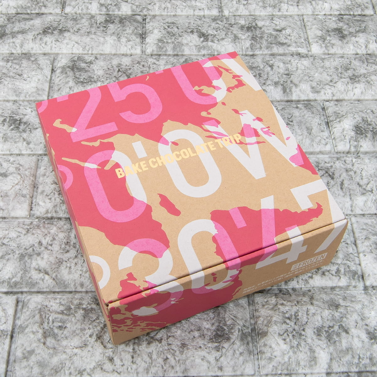 世界地図をモチーフに、カカオ豆の産地を表す緯度・経度の数値を用いて「BAKE CHOCOLATE TRIP」のコンセプトを表現したデザインに仕上げたおしゃれな箱に詰め合わせ。