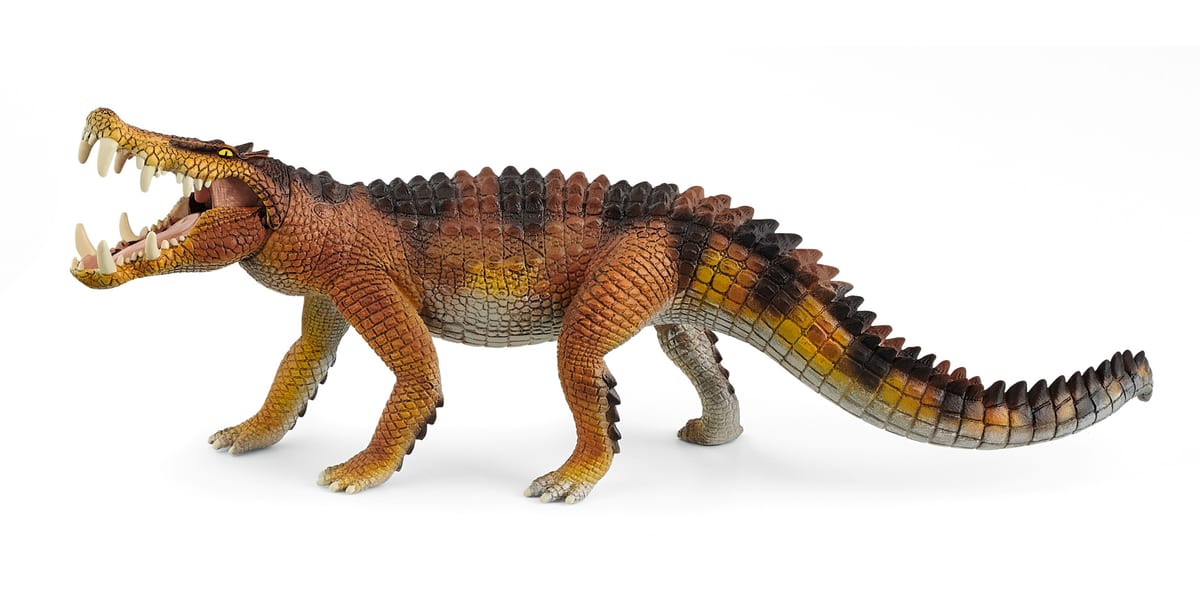 白亜紀後期に、地上で主に小動物を食べて生活していたと考えられているこの恐竜は、独特の歯と頭の形から”カプロスクス”(イノシシのようなワニ)と名付けらました。